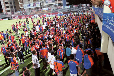 さらに2012年9月には、ホームでのサムットソンクラーム戦において、今回と同じく1-2で負けたのですが、微妙なチャージによるファールでPKを相手に与えられたことと、これまた微妙なオフサイドの判定でゴールされたことに対し、ピッチになだれ込んで審判の控え室を取り囲み、帰路を妨げるなどしました。あるサポーターによると審判の部屋にバイクで突入しようとしたりもしたようです。